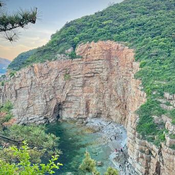 银沙滩:大连版济州岛,从停车场下来有一条通往大海的小路